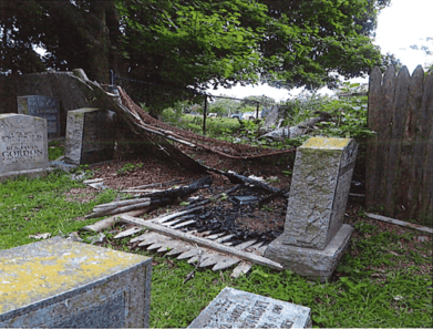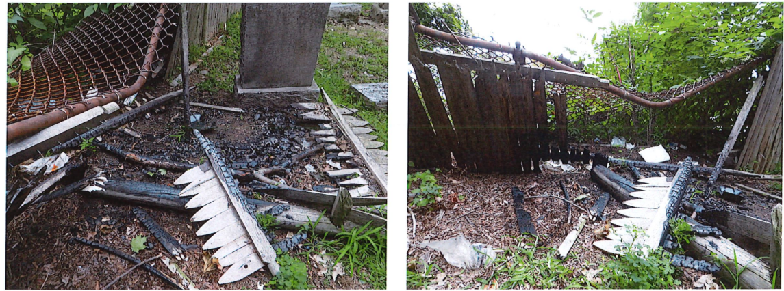 On Tuesday, Aug. 20 at approximately 2 p.m., Melrose Police were dispatched to the Workmen’s Circle Cemetery, located at 740 Broadway, after receiving a report of possible vandalism to the cemetery grounds. Upon arrival, officers found fencing bordering the grounds to be knocked over and charred from a fire. A headstone had also been knocked over and blackened from fire.